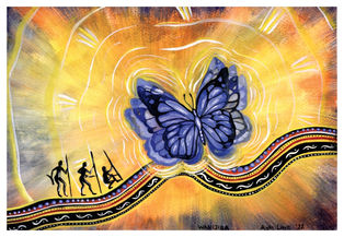 Bushman and Beyond" is a series of twelve paintings, each one a journey into the depths of my imagination and the echoes of ancient memories. These paintings tell a story, a creation story as old as time, spun with intention and love. Through prose and imagery, they guide you down a winding path into the dream time, where the past and the present intertwine.